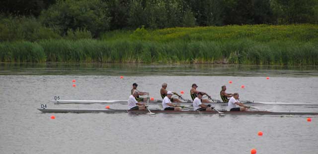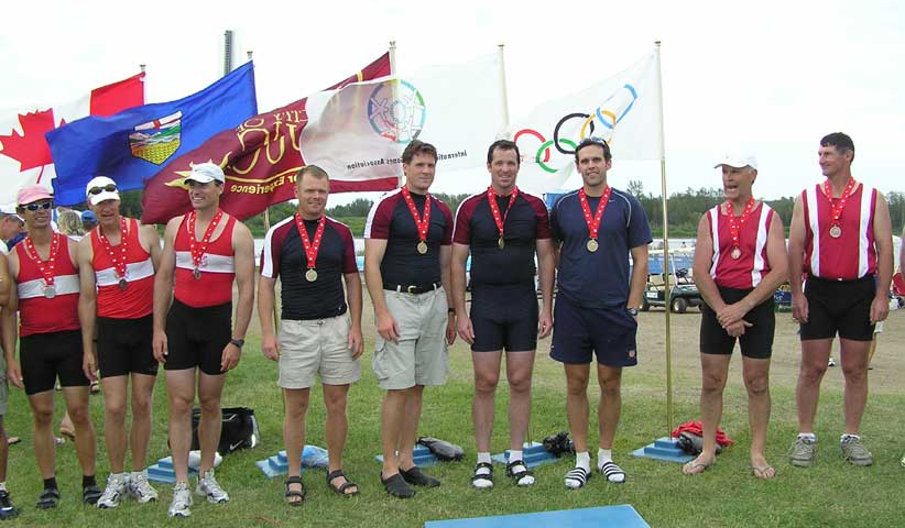 The World Masters Games opens Friday, July 22nd, in Edmonton, Alberta Province, Canada. Over 23,000 masters athletes (age 27 and older) have registered to compete in more than 25 different sports. The Kent Mitchell Rowing Club from the San Francisco Bay Area is competing in its third consecutive World Masters regatta. KMRC has entered its 23 member competitors (ranging from age 27 to 68) in 23 men's rowing events over the 4 days of competition beginning Friday morning, July 22nd, and ending Monday evening, July 25th.