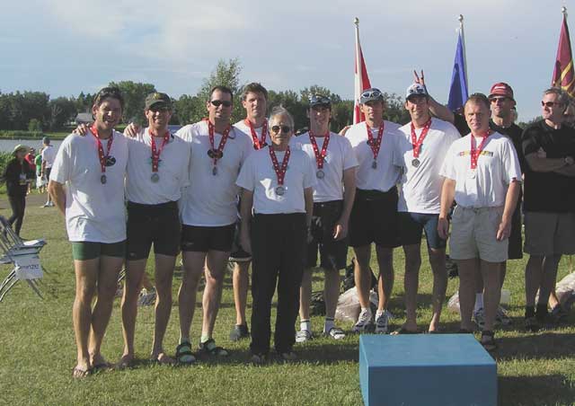 Although KMRC was one of the favorites in this event, it was the last race of the regatta, after several delays and rescheduling due to a prevalence of lightning storms, and probably just one race too many for KMRC after a long four days of racing. KMRC was in third place with a few hundred meters to go, but fell out of contention for the medals in the last 200 meters, finishing officially in 6th place with 4th, 5th and 6th places all within one second.