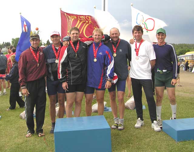 With Russian gold medalists. Far left James Baker, far right Matt Parish and