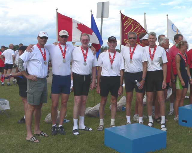 KMRC then continues its last day of competition on Monday morning in the E8+ (eights with coxswain, average age 55+) which it won in the World Masters Games in Melbourne 3 years ago. This will be a hotly contested event with two heats, top four in each heat to the afternoon final. KMRC boat will include Mike Still, Craig Webster, Greg Springer, Larry Hough, Skip Spiering, Dick Lyon, Dick Draeger and Tony Johnson.