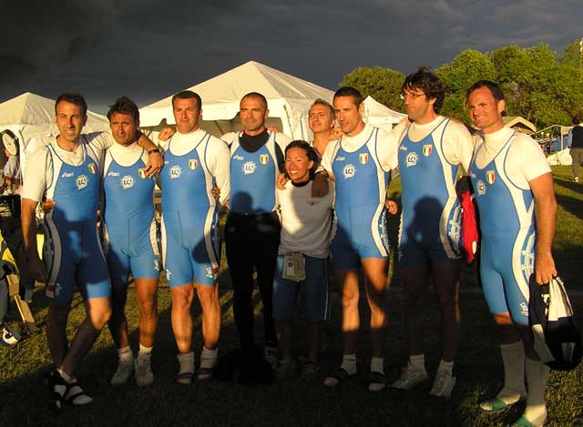 KMRC starts the last day of its WMG competition with the quadruple sculls in the 36+ age category, with the same boat that won in the younger 27+ category on Friday. This should be a gold medal boat.